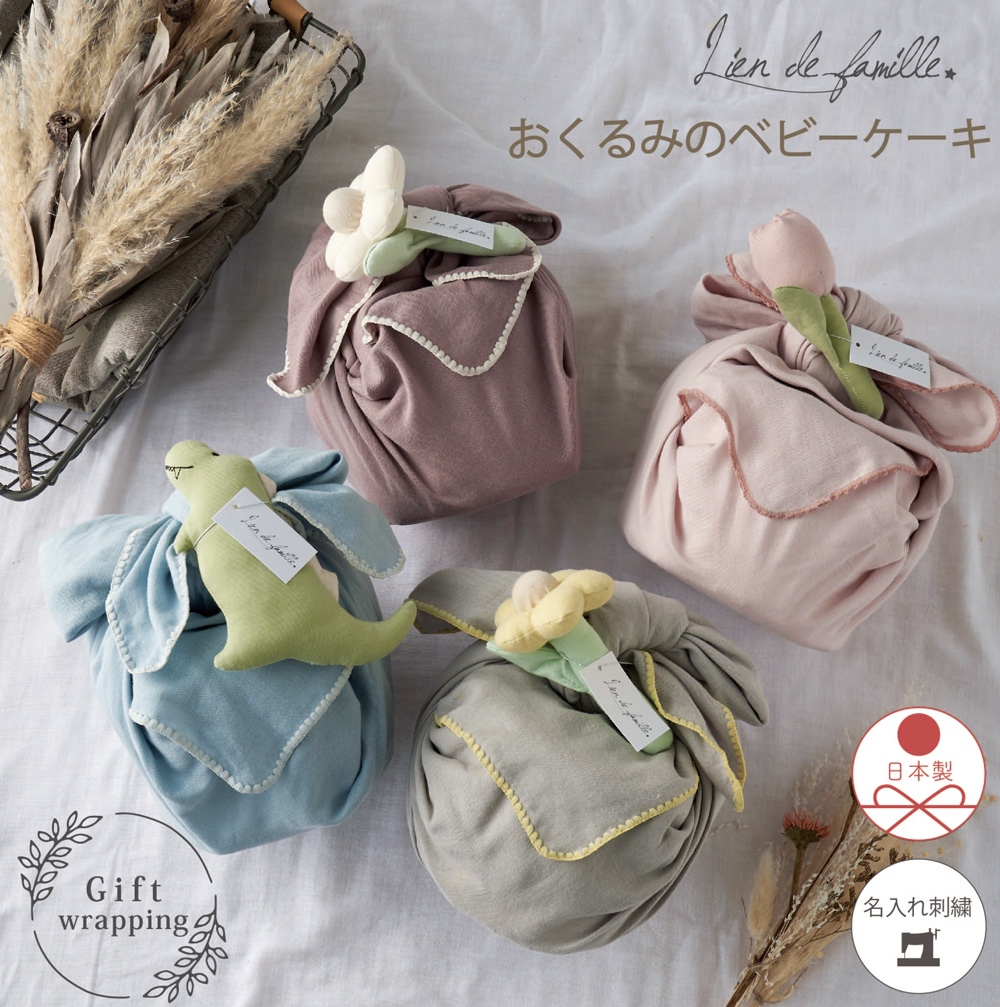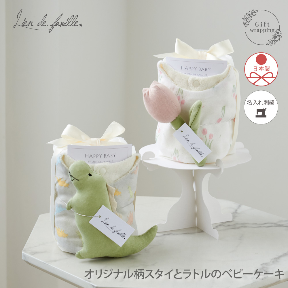 ガーゼハンカチ・ミニハンカチ・ウッド歯固めのオムツケーキ