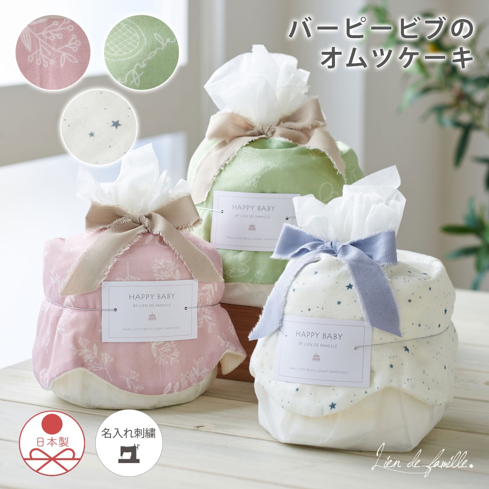 ガーゼ3枚セットとほしのラトルのおむつケーキ