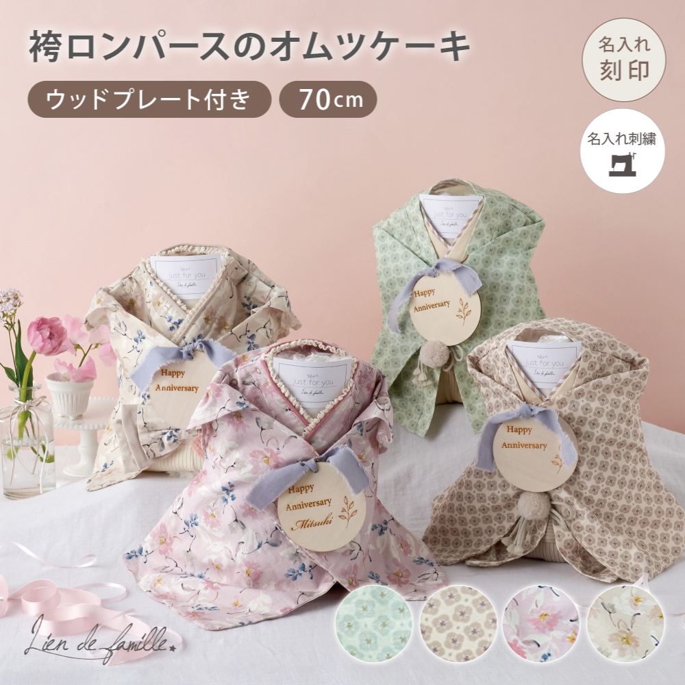 袴ロンパースのオムツケーキ・ウッドプレート付き・70cm