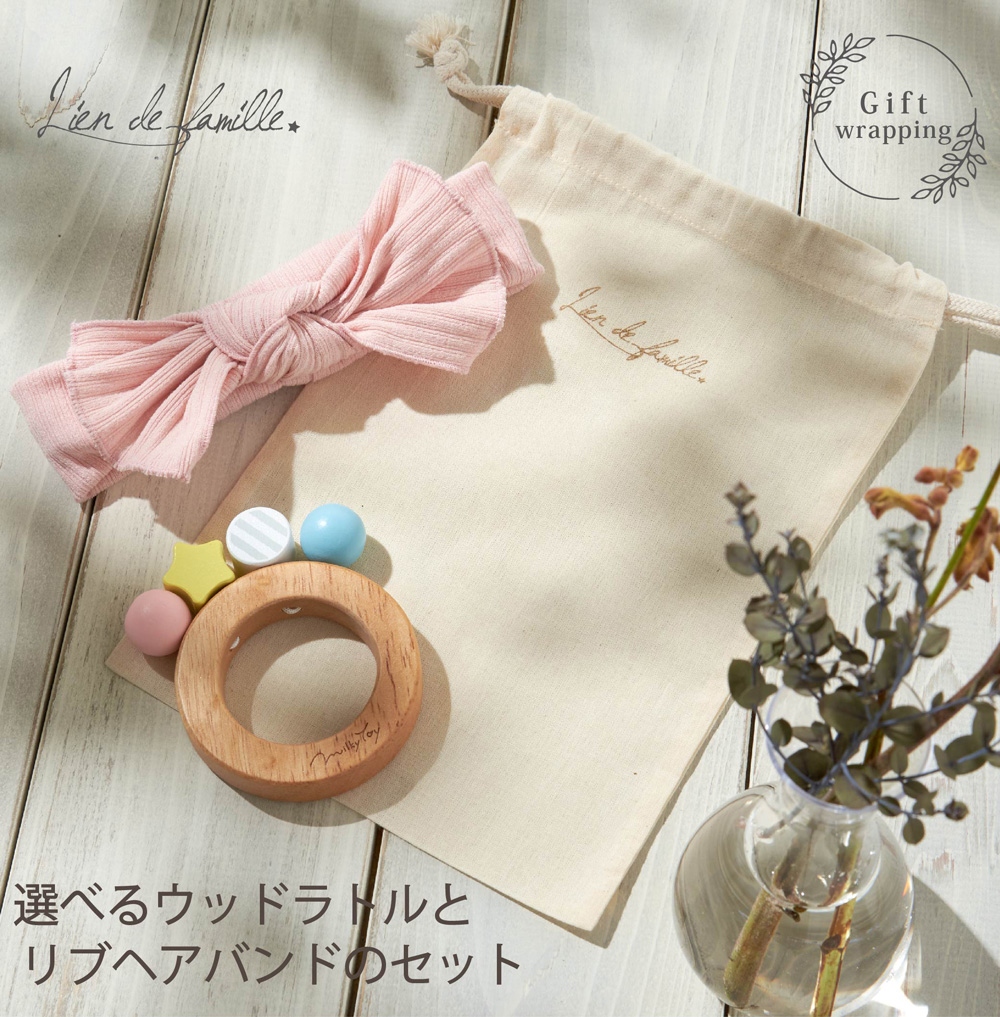 選べるウッドラトルとリブヘアバンドのセット