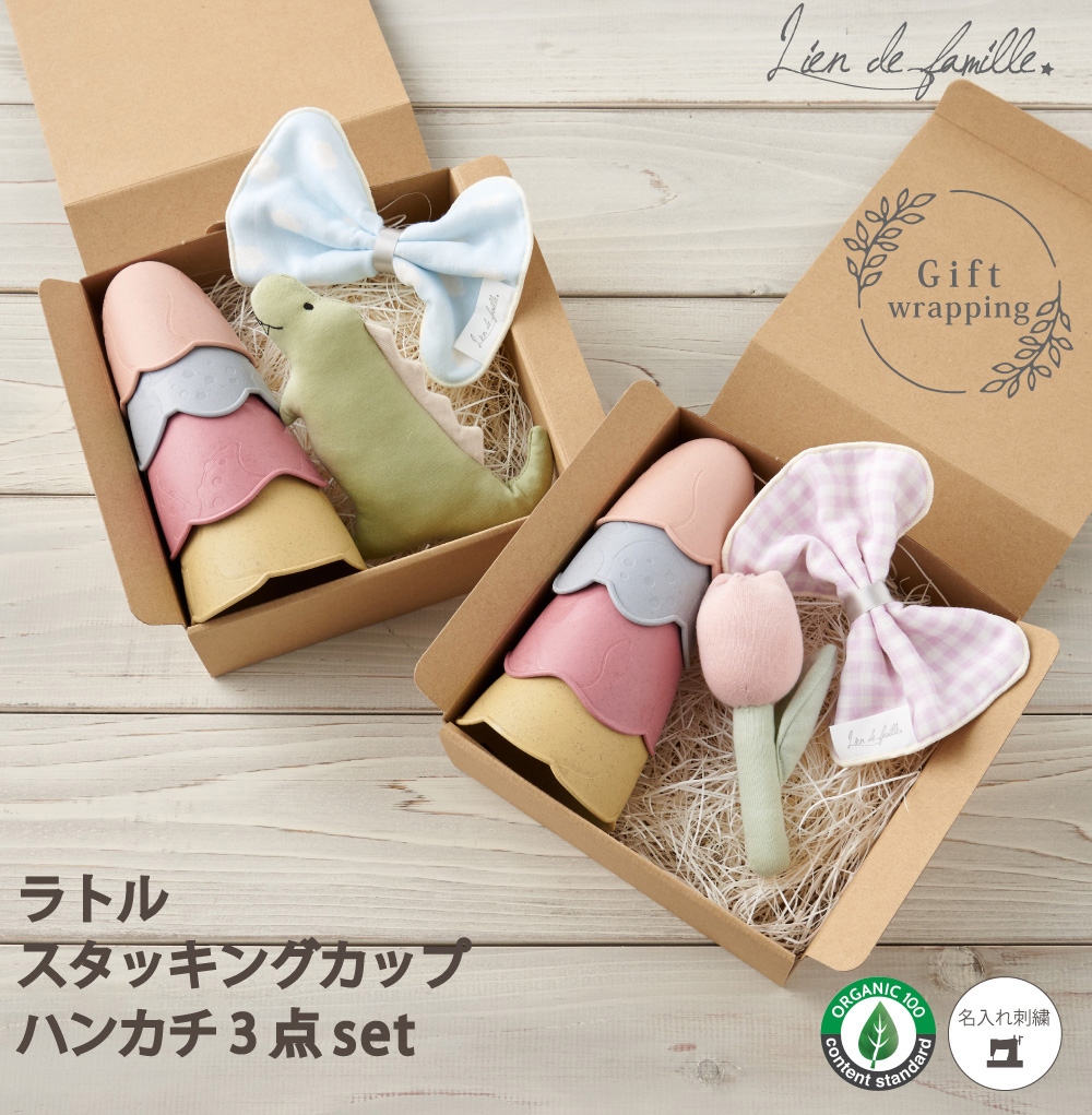 ラトル&スタッキングカップ&ハンカチ3点セット