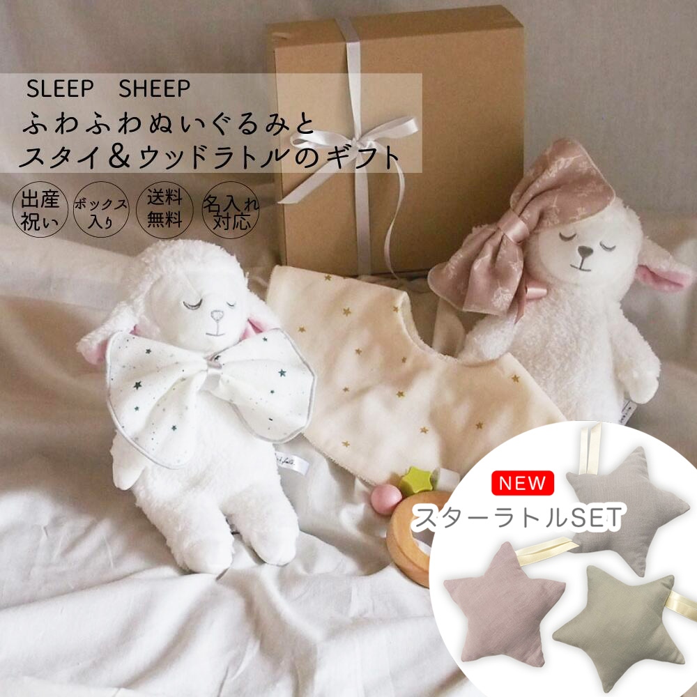 SLEEP SHEEP ふわふわぬいぐるみとスタイ&ウッドラトルのギフト