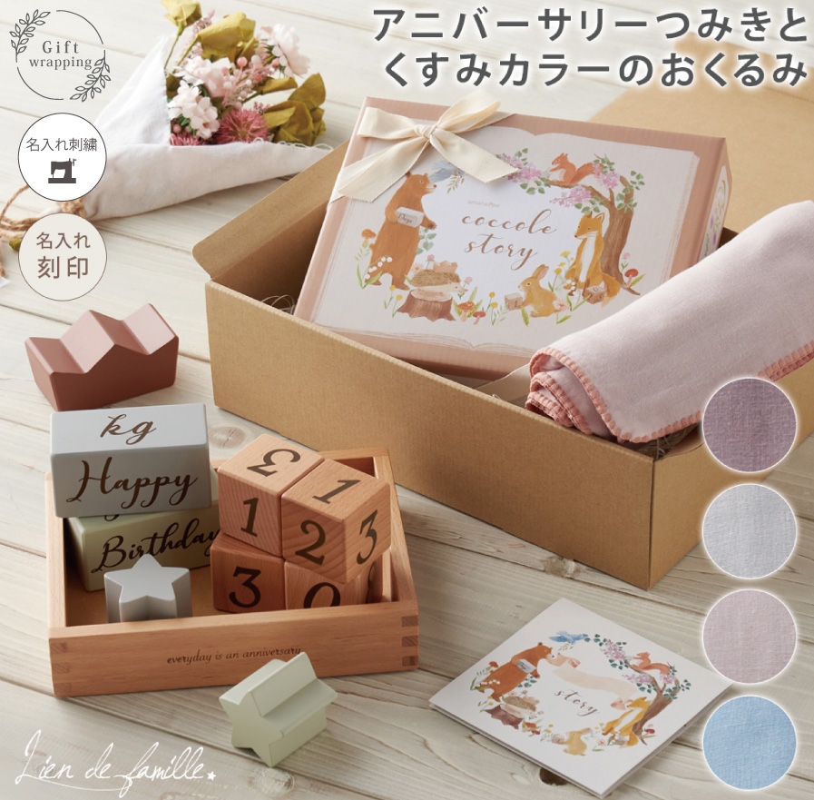 アニバーサリーつみきとくすみカラーのおくるみ