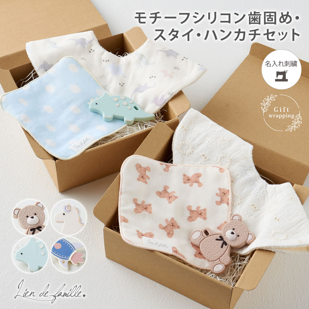 まぁるいスタイとモチーフシリコン歯固めとミニハンカチのセット