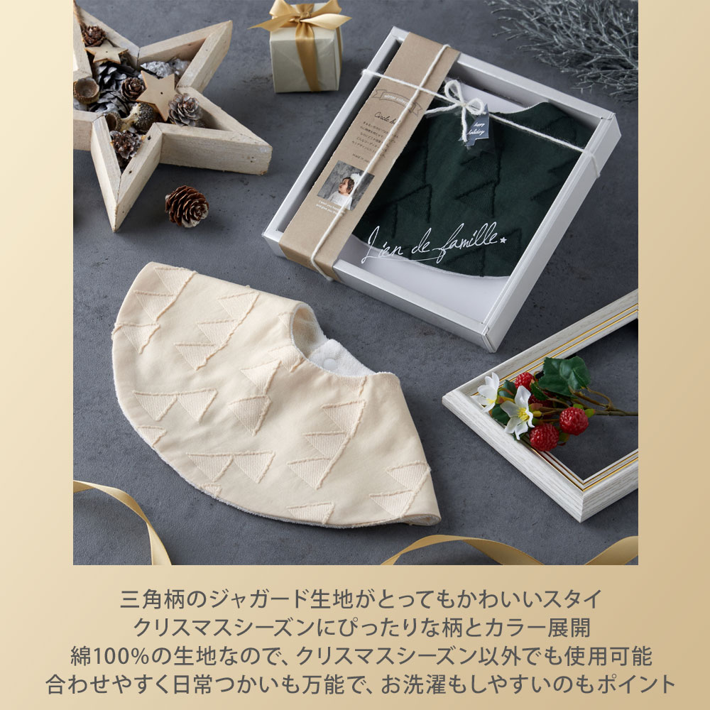 表面はクリスマスツリーを連想させるような三角柄になっているので、冬にむけてのお洋服にぴったりです。
