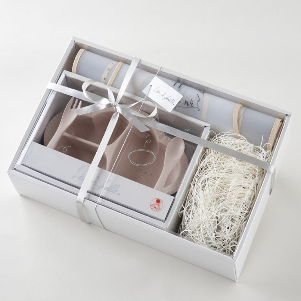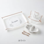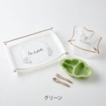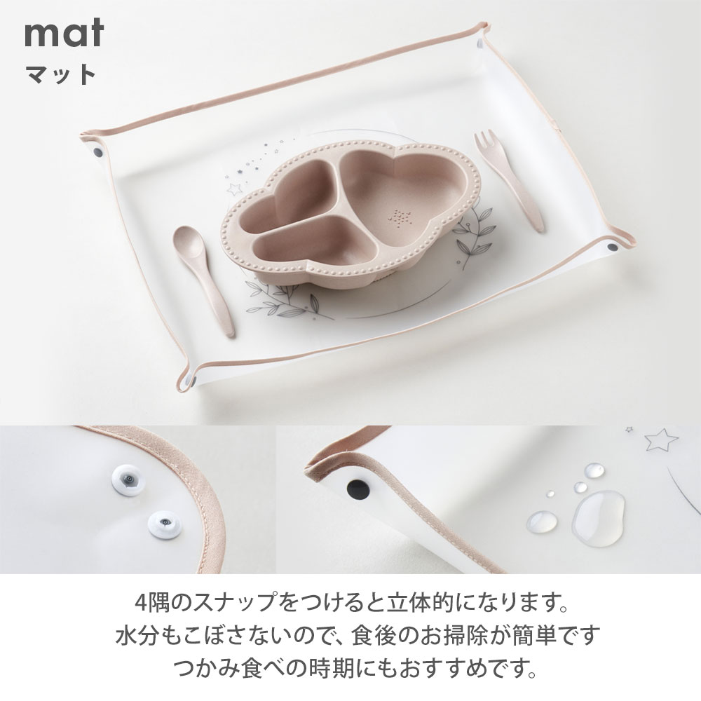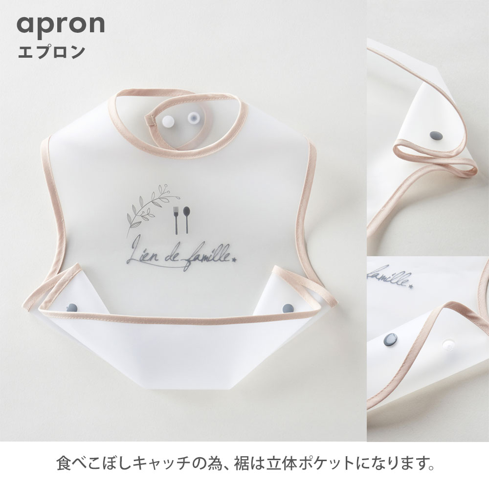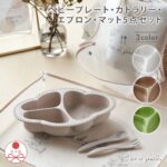 EVA素材のお食事エプロンとマットのセット+大人気の竹粉原料のバイオマスプラスチック製の食器プレートとカトラリーが一つになりました。