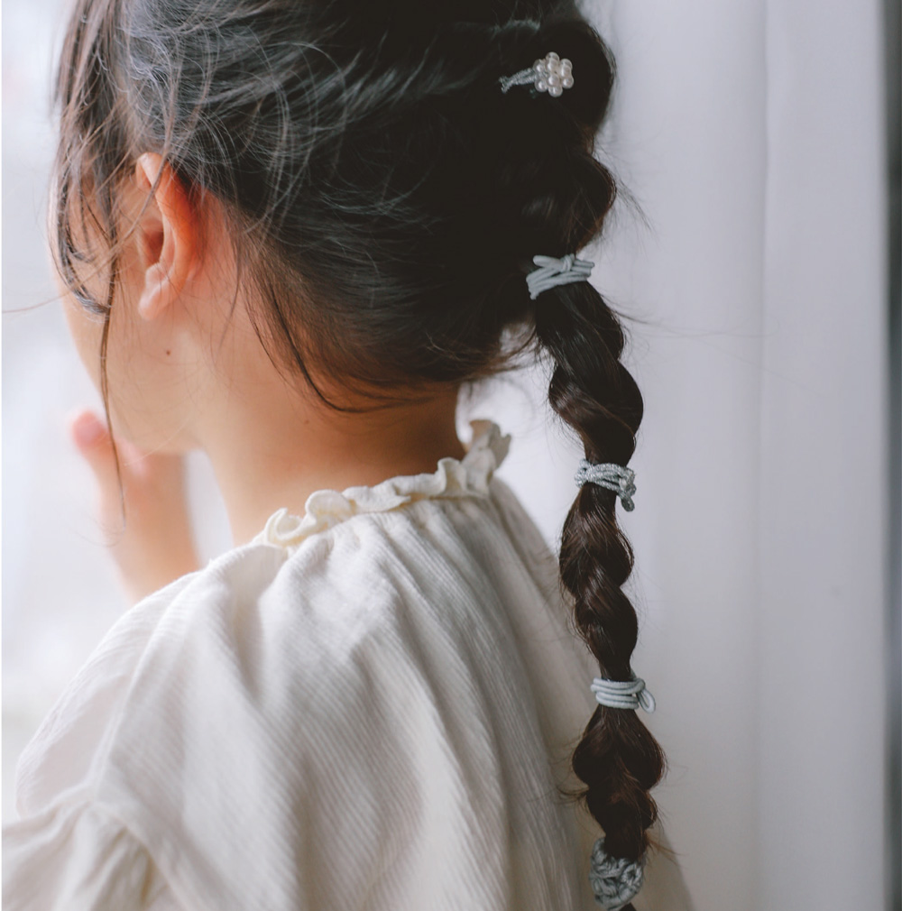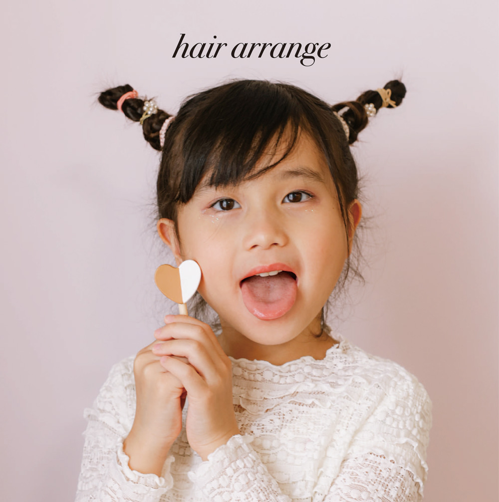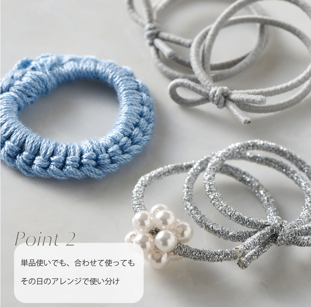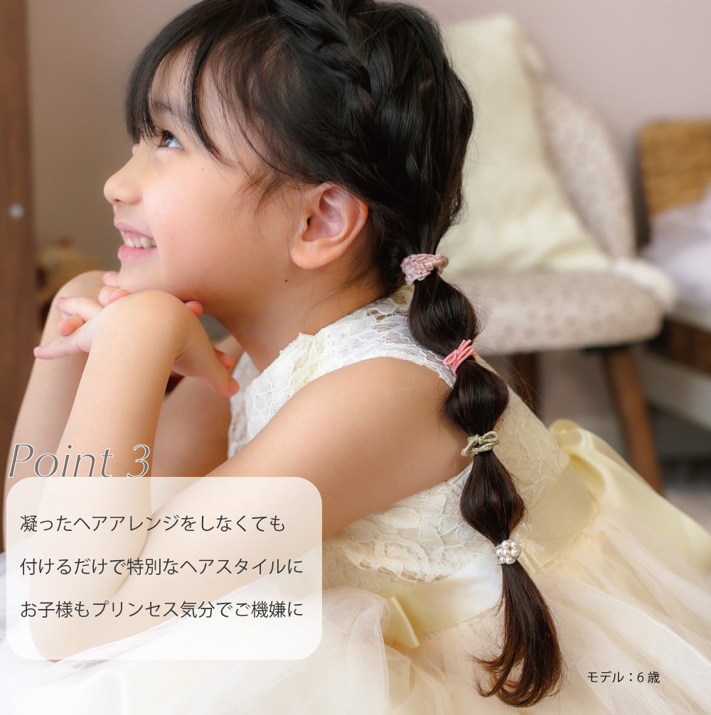 ミニゴムタイプなので、まだ髪の毛の少ないお子さんでも付けやすく 結ぶだけでかわいいヘアアレンジができます。