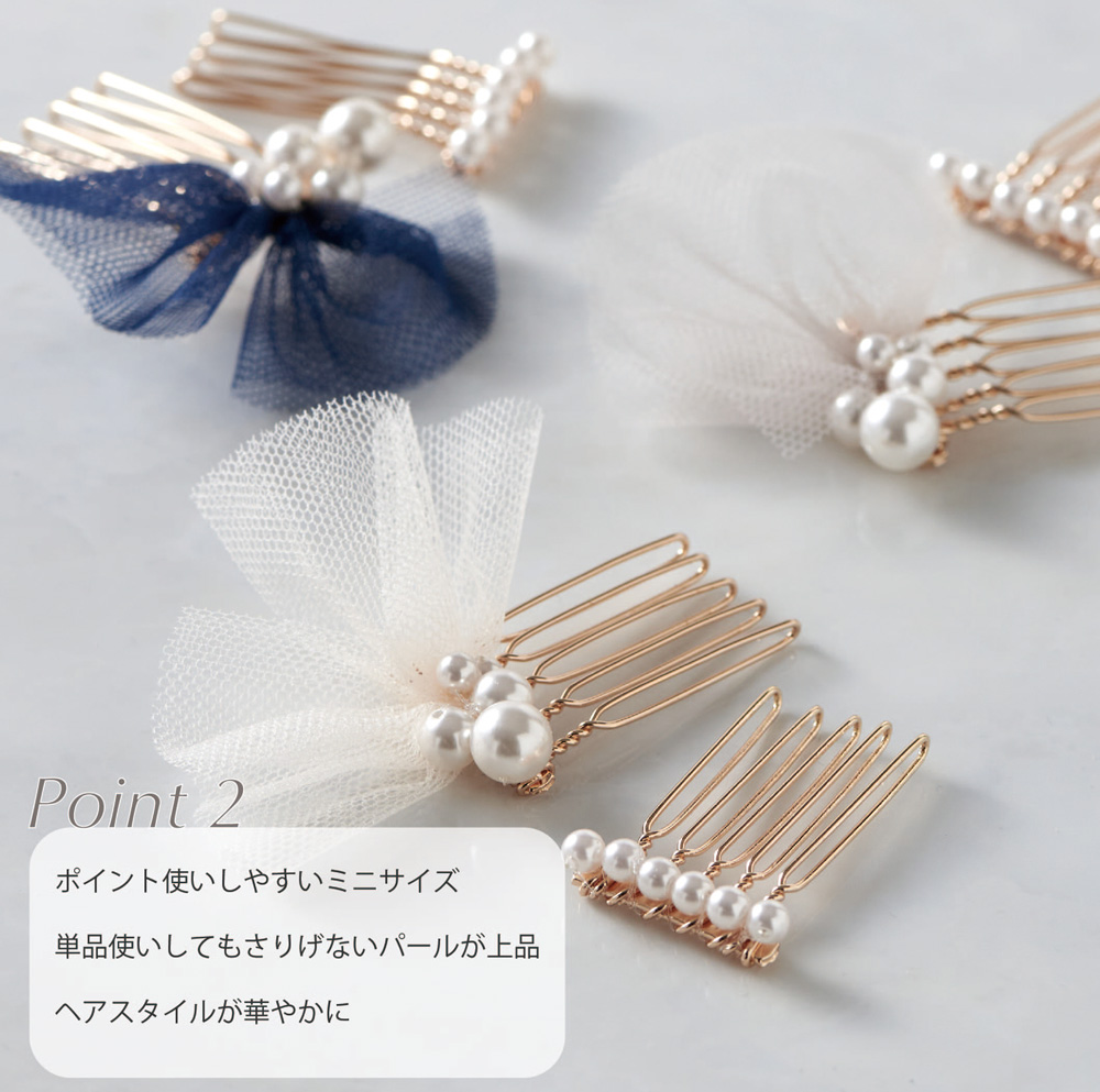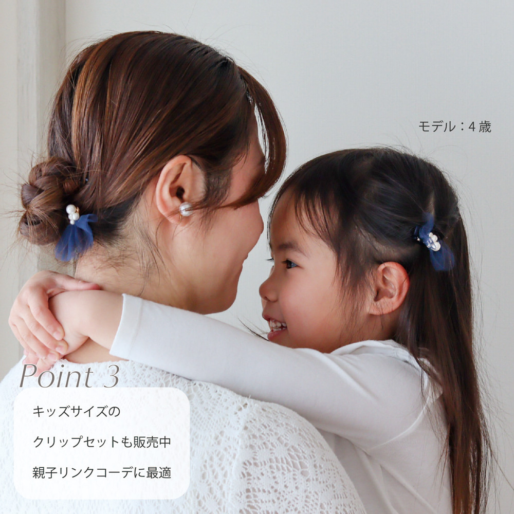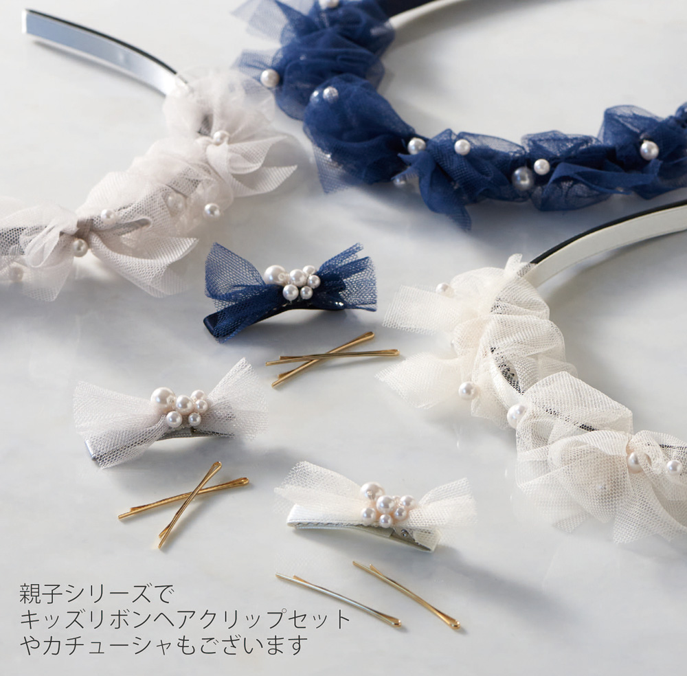 パールやチュールを使用しているので、結婚式や入学式など華やかなシーンに おすすめです。