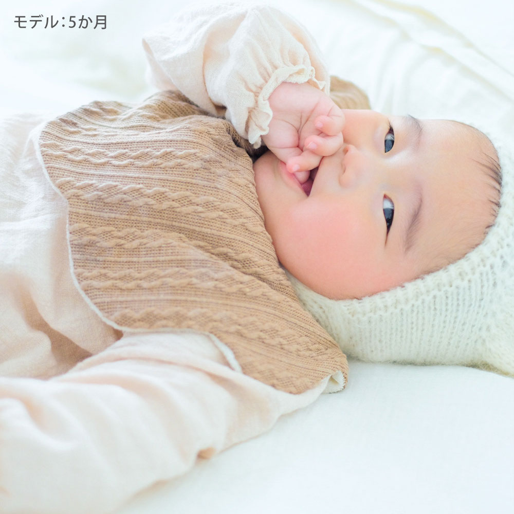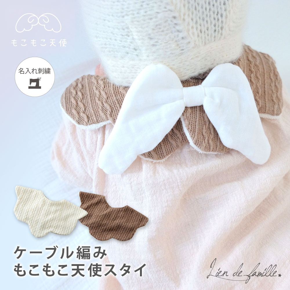 ケーブル編みもこもこ天使の羽スタイ