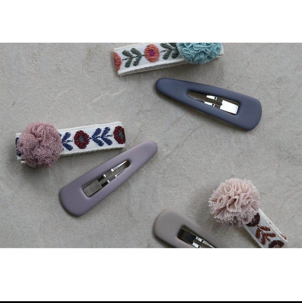 ポンポンがついたクリップとマットパッチンピンのセットです。