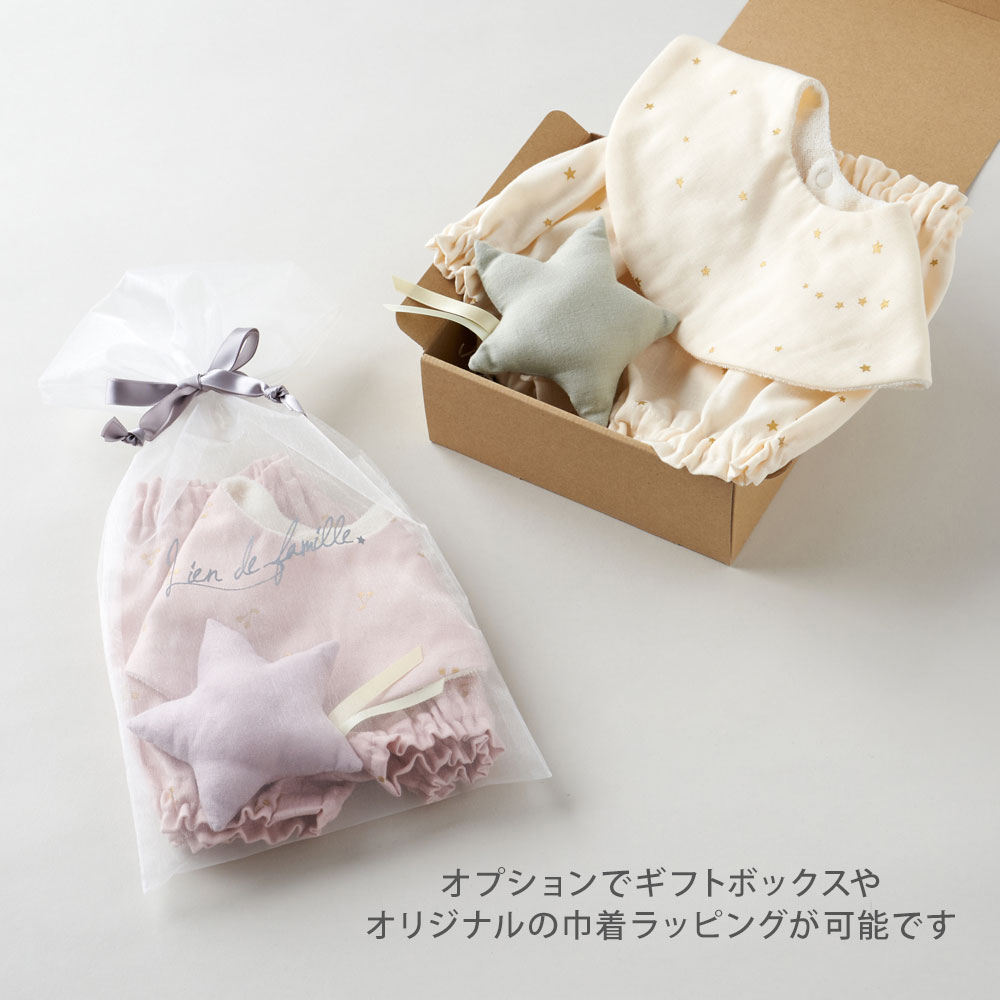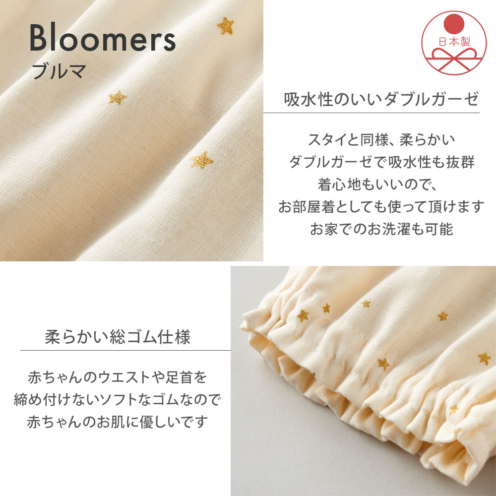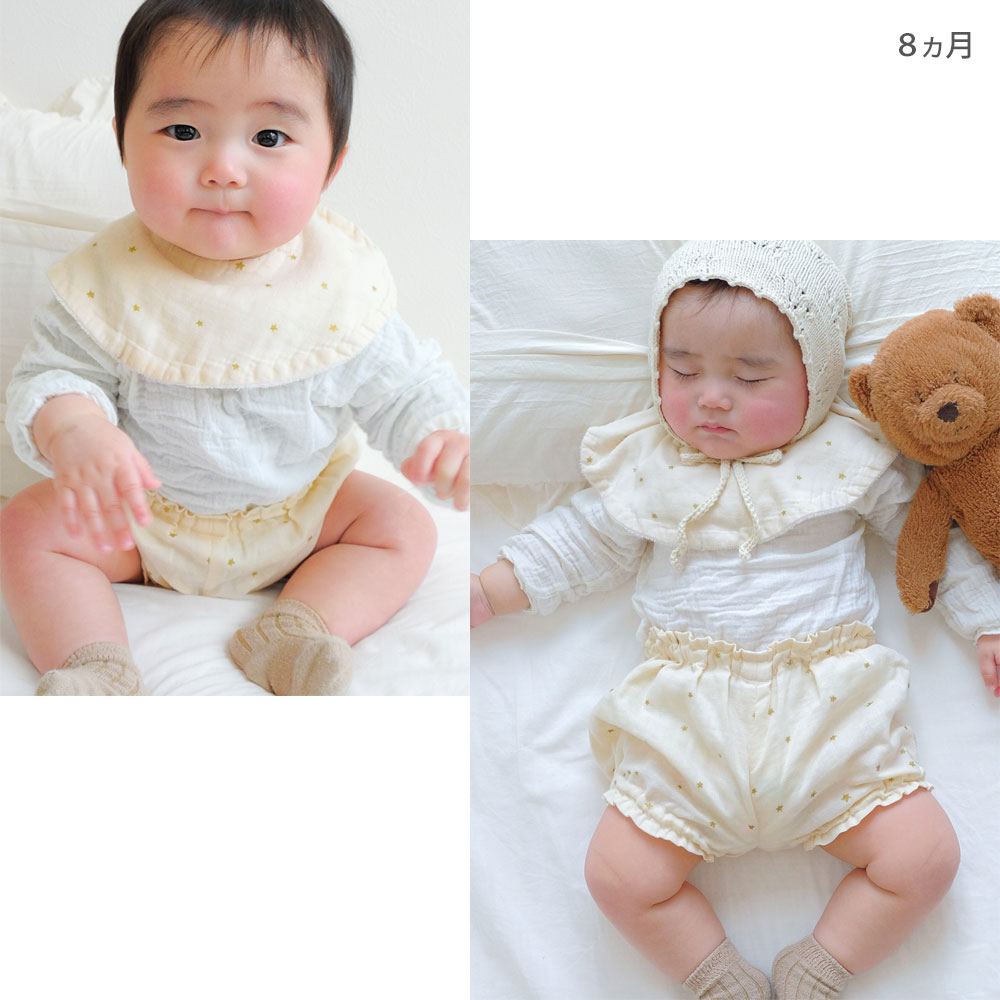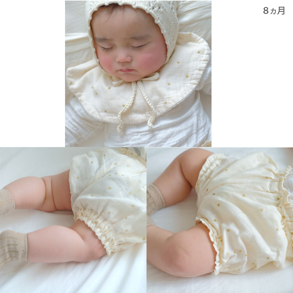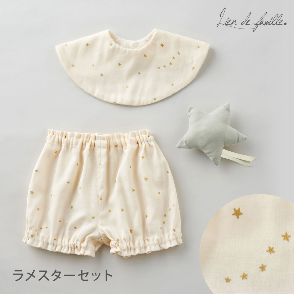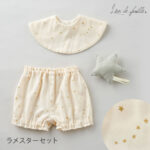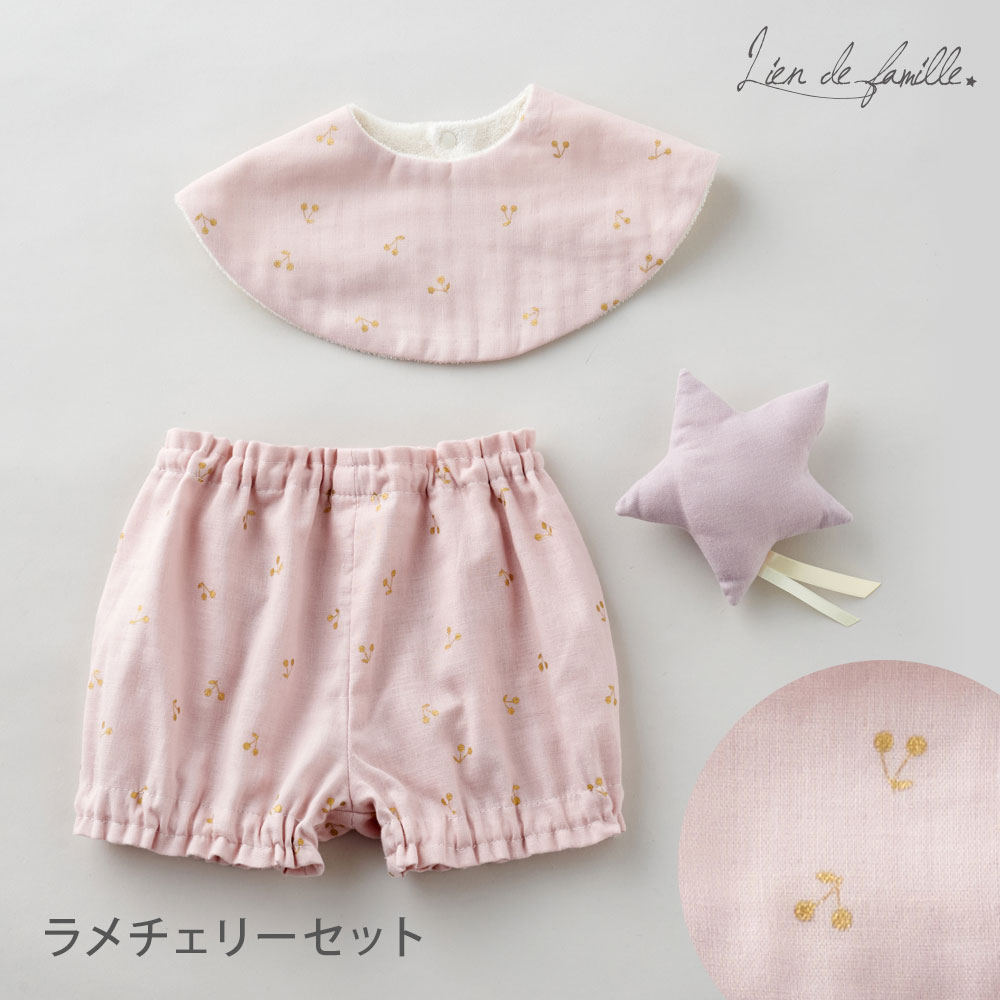 上品なラメスターとチェリー柄のスタイ・ブルマはLien de familleで人気の柄です。