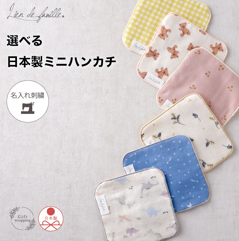 エコ巾着入りのハンカチセットなので保育園や学校用にもお使い頂けます。