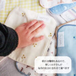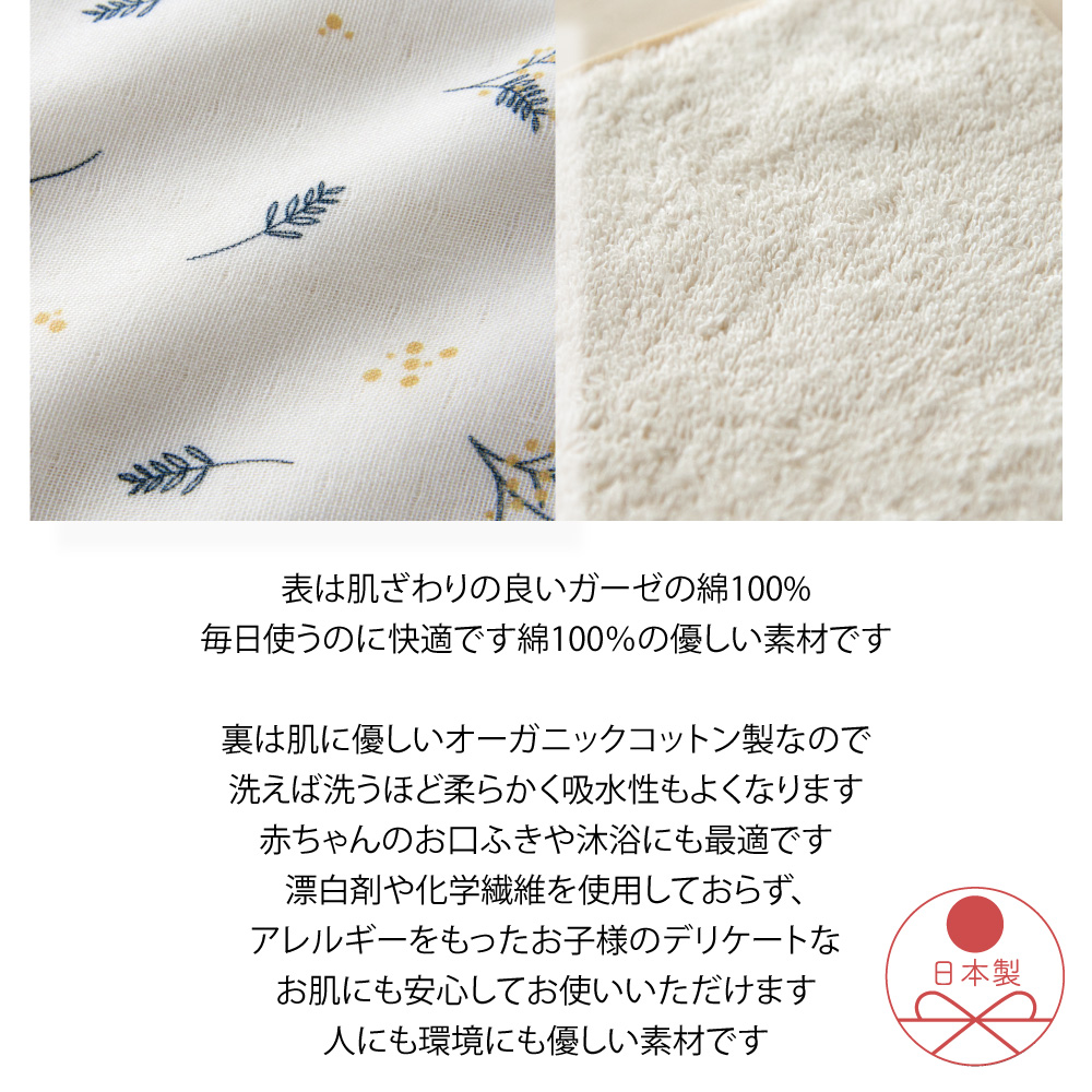 - 表はオリジナルプリントのガーゼ生地、裏は肌に優しいオーガニックコットン製。
