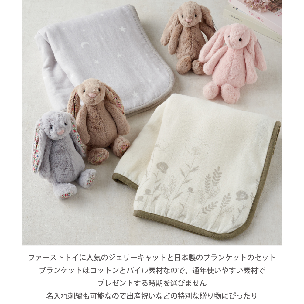 - ファーストトイで人気のジェリーキャットとLien de familleオリジナルの日本製ブランケットのギフトセットです。