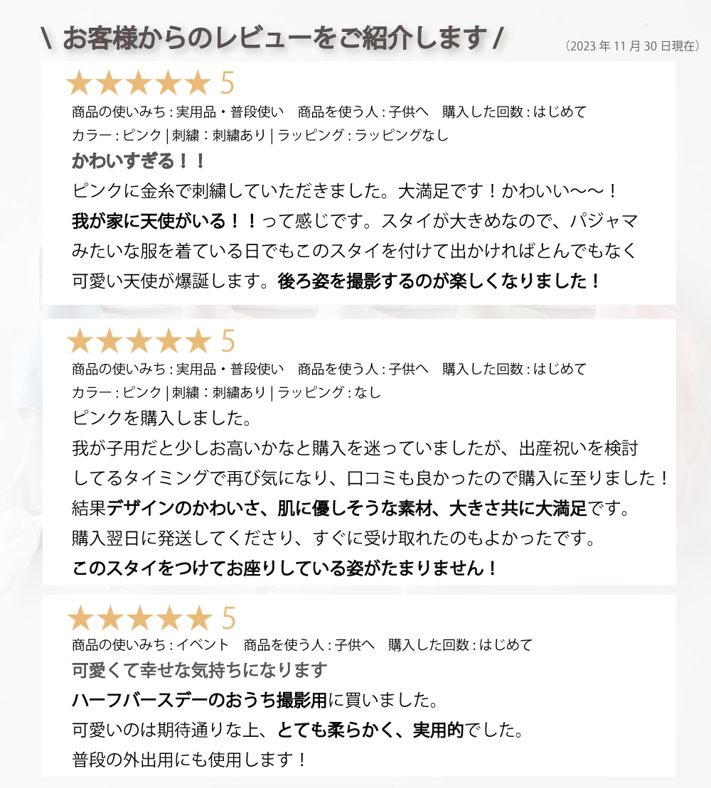赤ちゃんの時期は寝ている際やハイハイ時期など、背面からのお写真も たくさん撮影する時期なので、写真写りは抜群です。