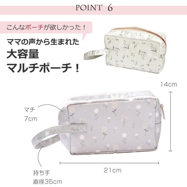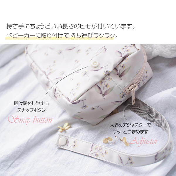 ポーチはオムツ入れだけでなく、おでかけ時のおやつセットや、ママアイテム入れにも使えます。