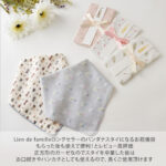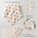 肌に優しいガーゼを使用しているので、スタイを使わないお子様、スタイを卒業してからも、お口ふきや、ハンカチとしてもお使いいただける正方形型です。