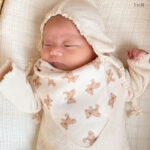 両端のスナップを止めるとバンダナ型のスタイに早変わり。