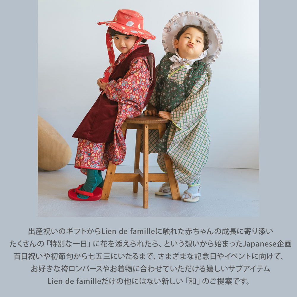 百日祝いや初節句から七五三にいたるまで、さまざまな記念日やイベントに向けて お好きな袴ロンパースやお着物に合わせていただける嬉しいサブアイテム。