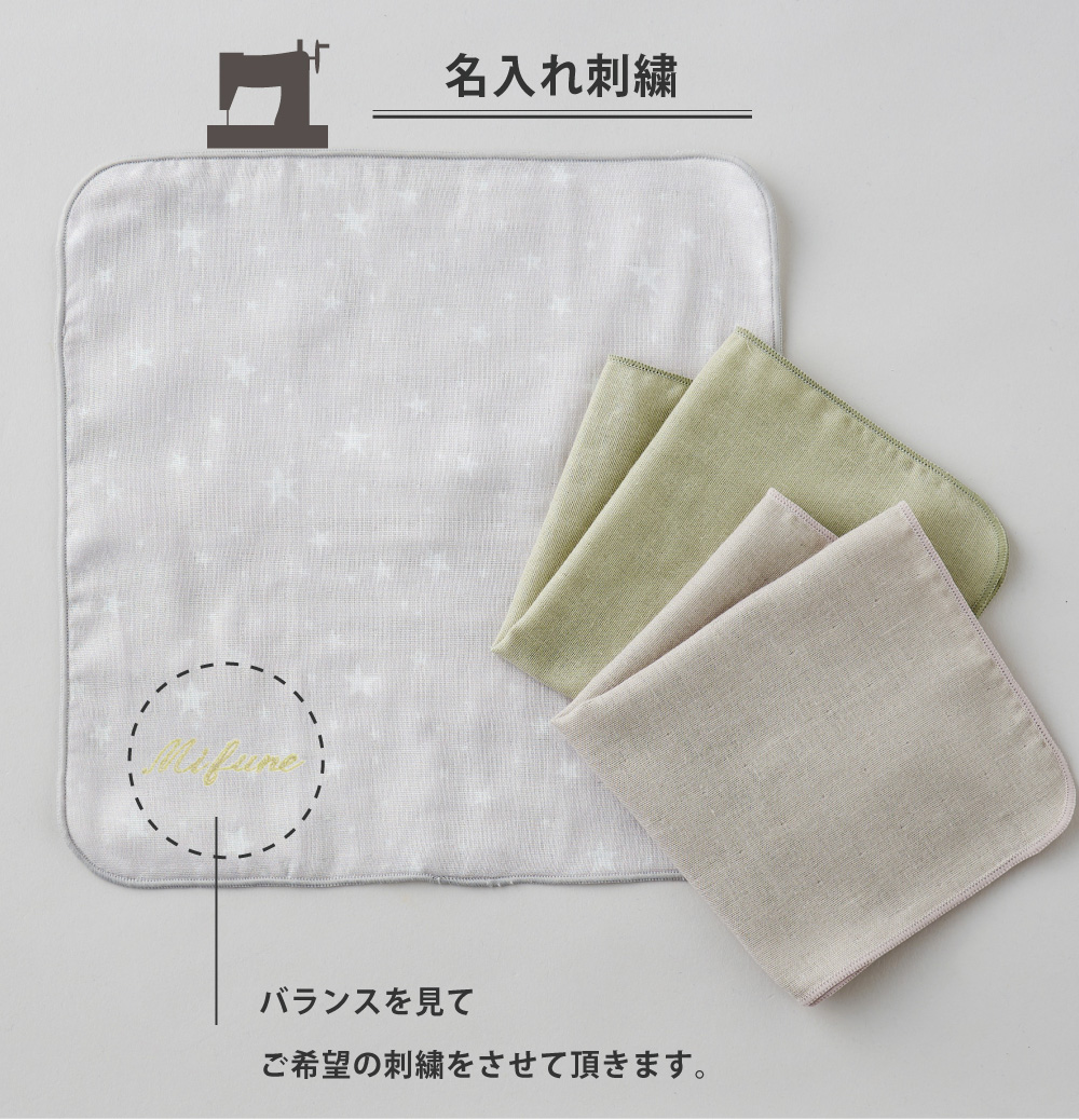 ガーゼハンカチは沐浴ガーゼや赤ちゃんのお口拭きにピッタリな素材感です。