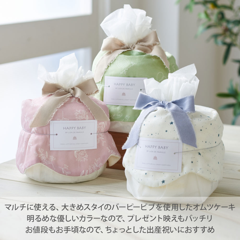 見た目もケーキみたいで愛らしく、出産祝いにピッタリです。