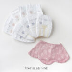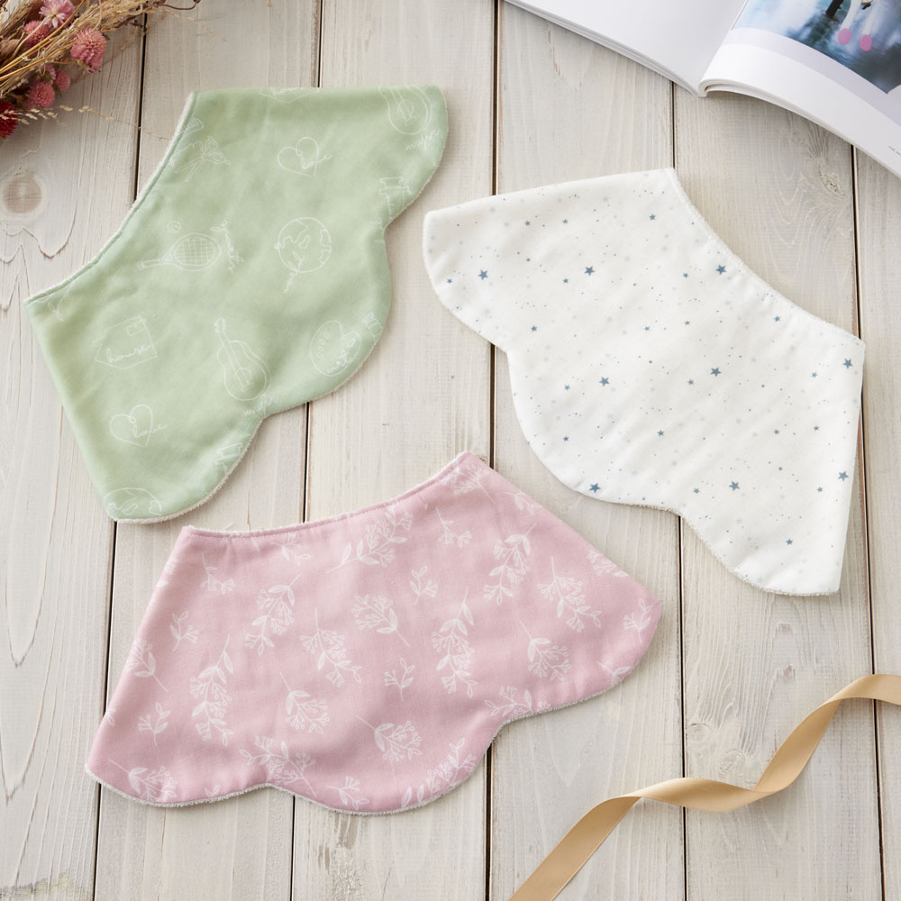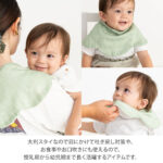 生まれたての赤ちゃんに使いやすいバーピービブは、お食事や日常使いはもちろん、大人の肩に 掛けると、授乳後のベビーの吐き戻し対策にも使えます。