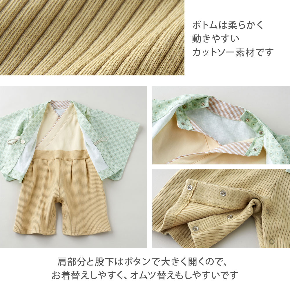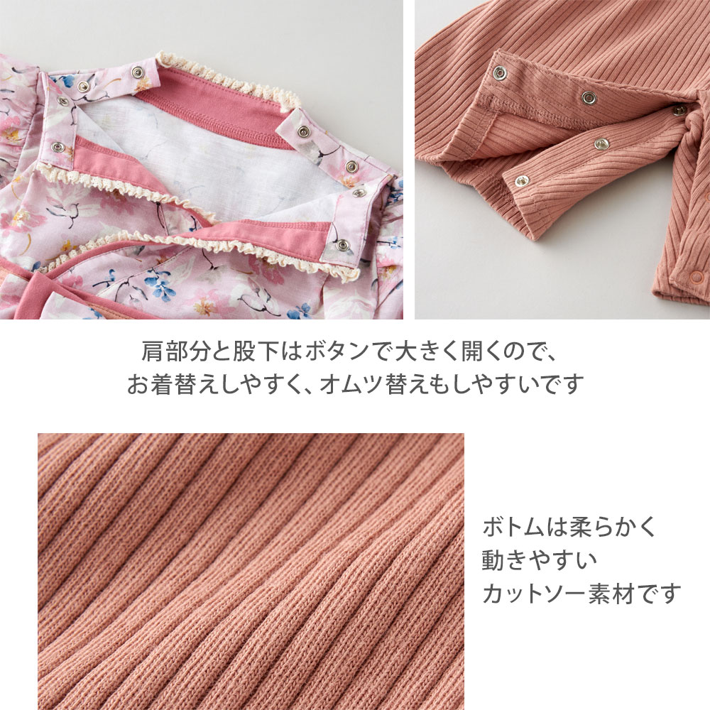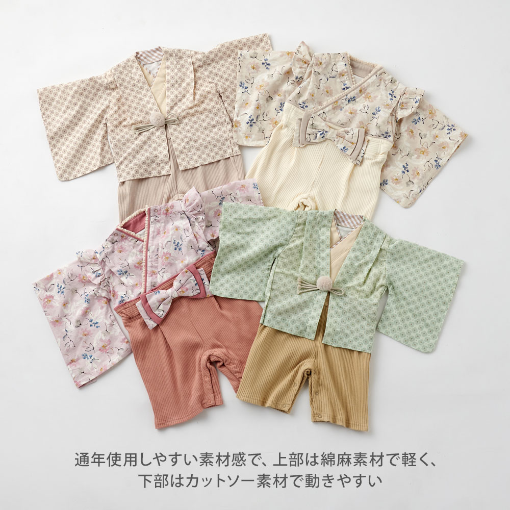 上部は軽い綿麻素材で、ボトムは動きやすいリブ素材なので、赤ちゃんが動きやすいです。