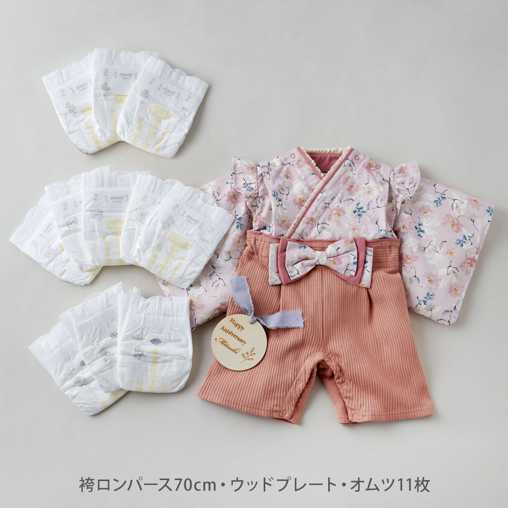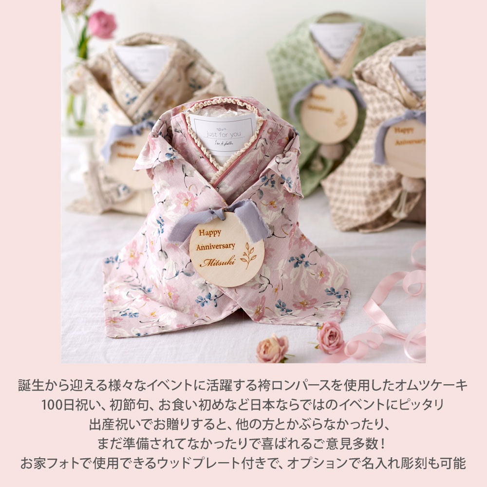- 赤ちゃんの節目のイベントに活躍する華やかな袴ロンパースのオムツケーキです。