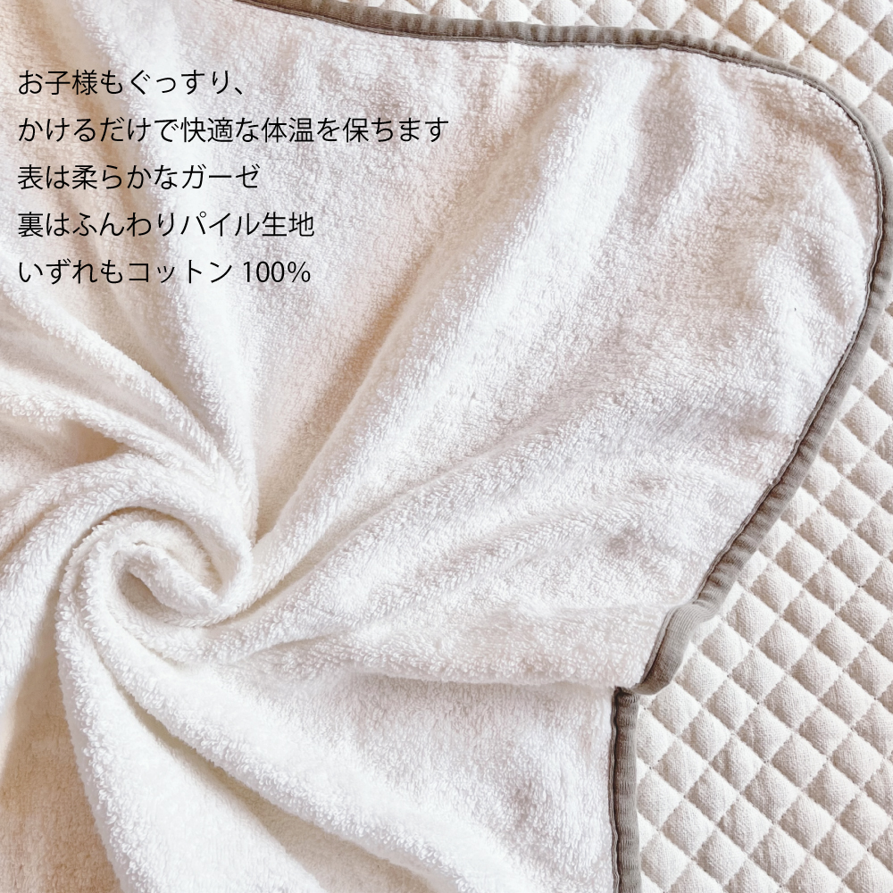 ブランケットは表面はガーゼ素材、裏面はパイル素材で肌触りもよく、お子様もぐっすりお休みになれます。