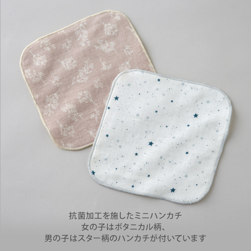 保育園にも使いやすいハンカチつきです。