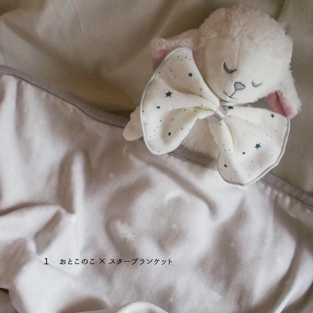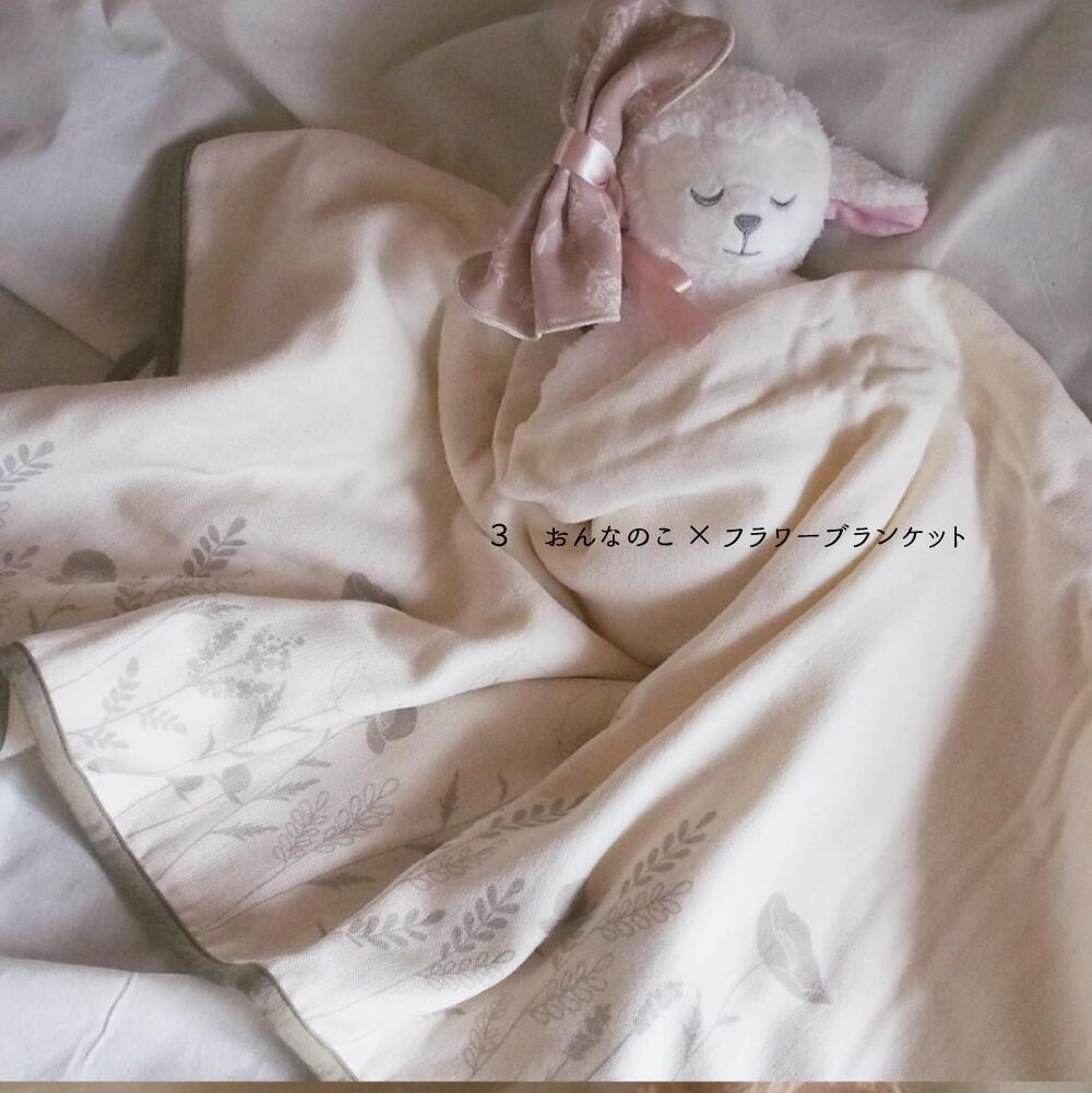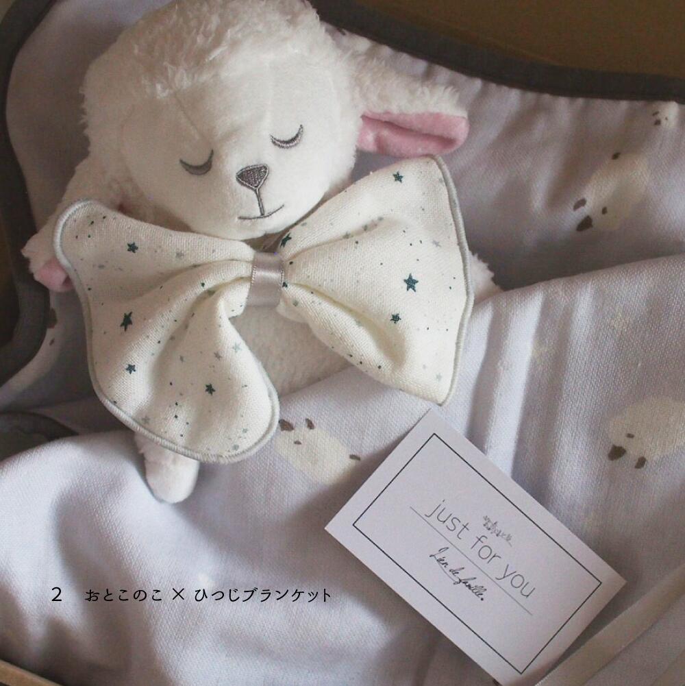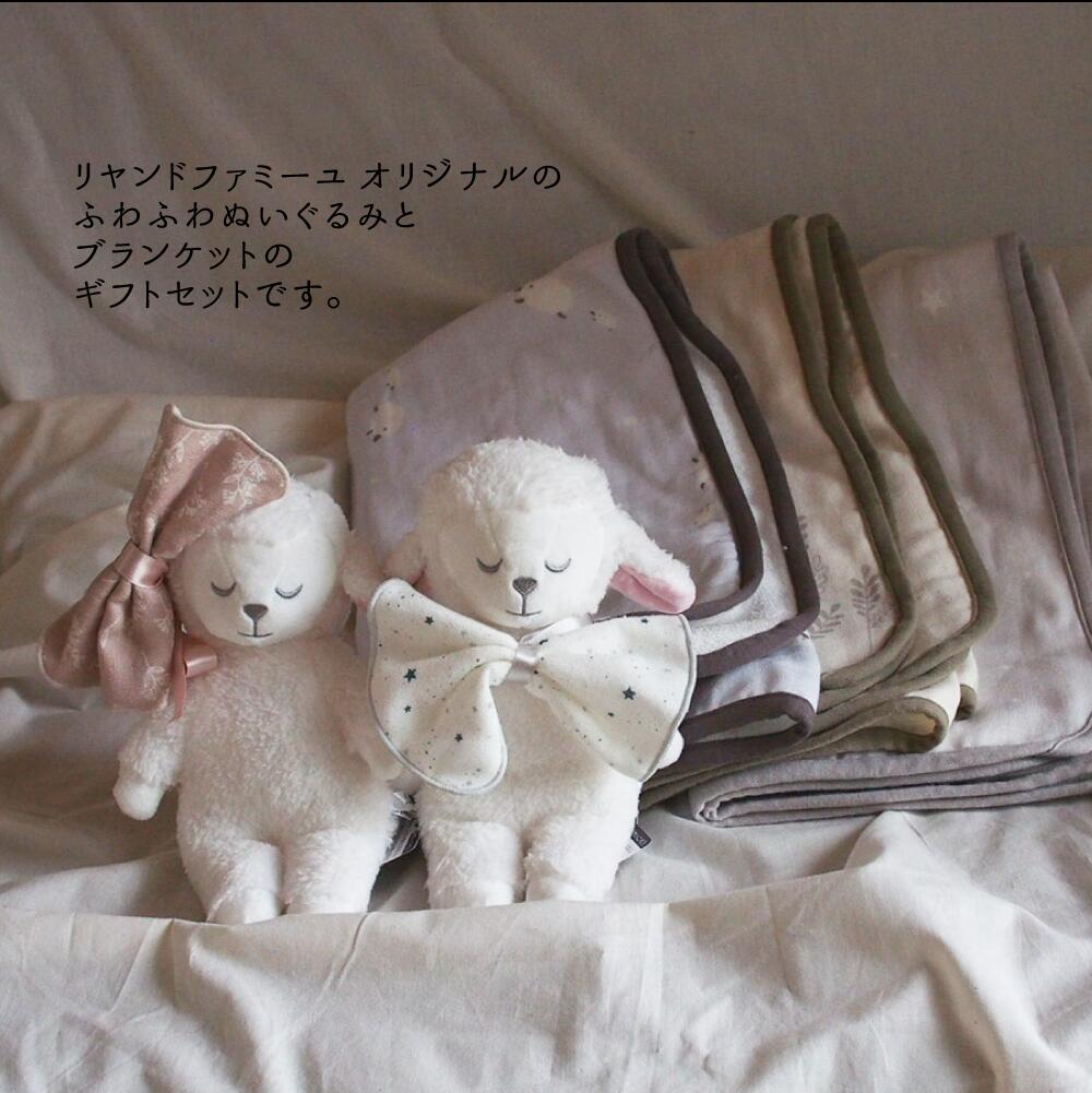Lien de familleオリジナルのひつじのぬいぐるみと綿100%のブランケットのセットです。