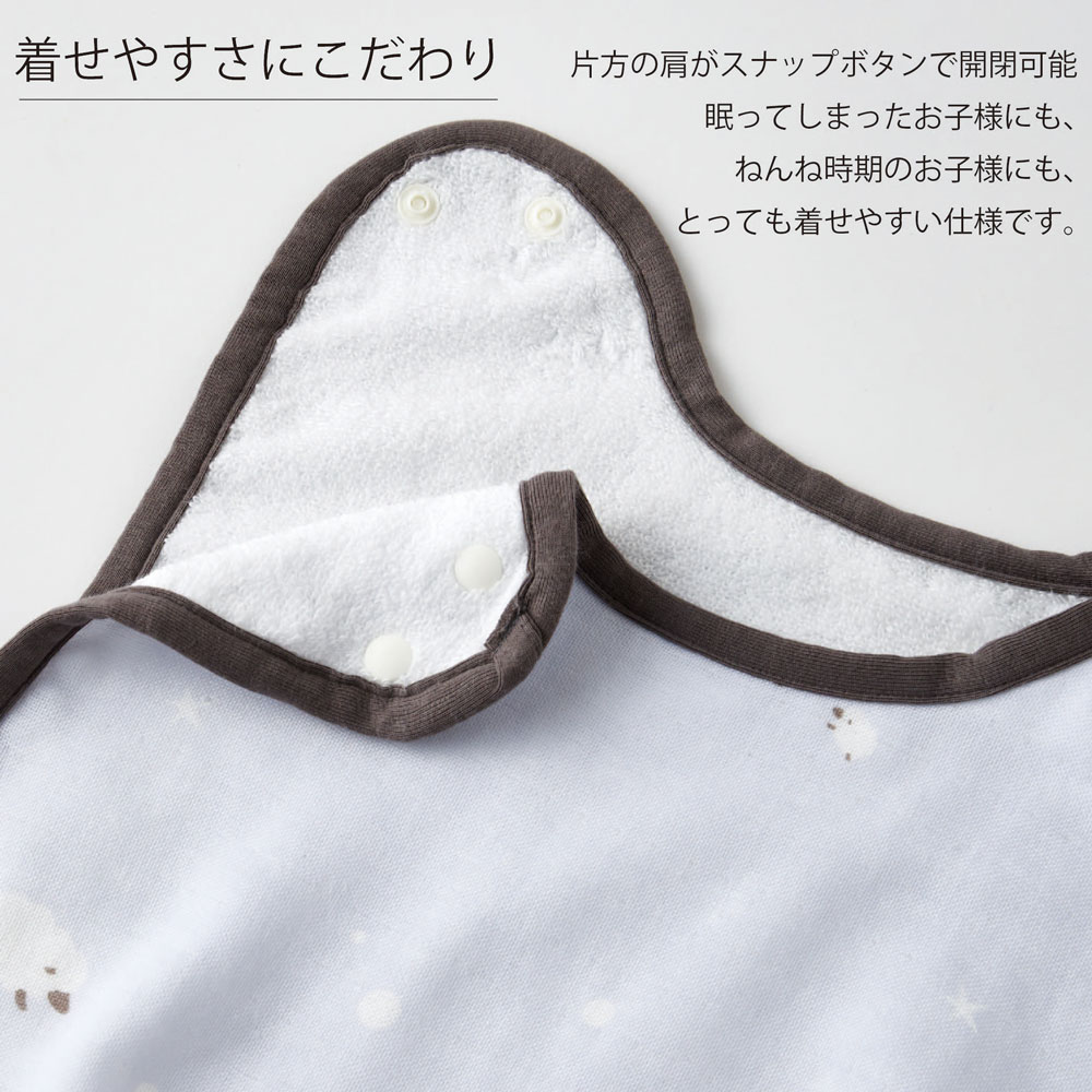 - ふわふわの日本製綿100%ガーゼとパイルのスリーパー。